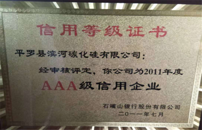 In 2011, it was rated AAA credit enterprise by shizuishan bank